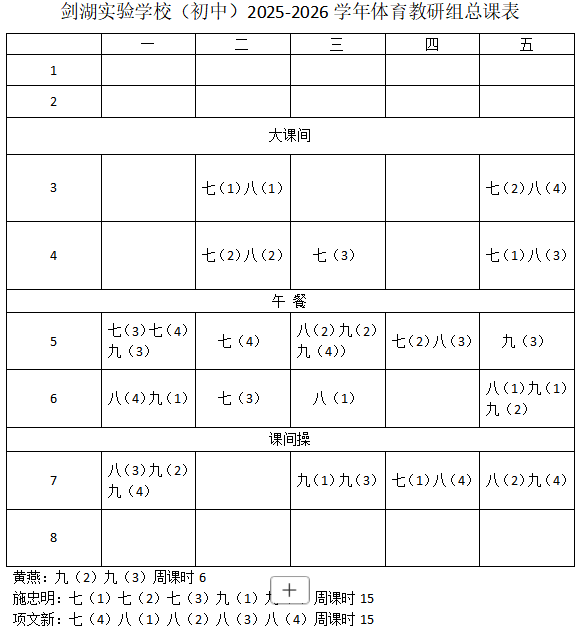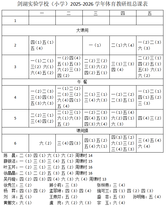 > 2025-2026学年剑湖实验学校体育教师课表公示